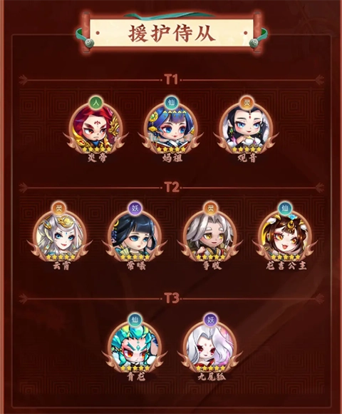 朱雀,可以给对手造成一定的灼烧状态,自带复活是个非常不错的站场侍从;
