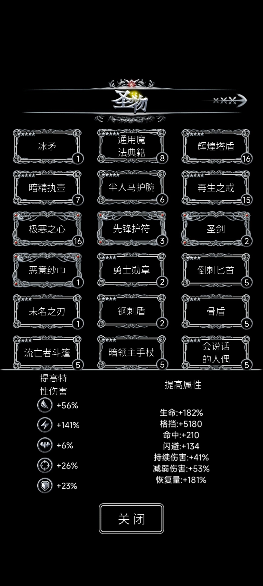成就点升到200,解锁天赋君王光环,圣物升到下面这个属性差不多可以打暗月神了。