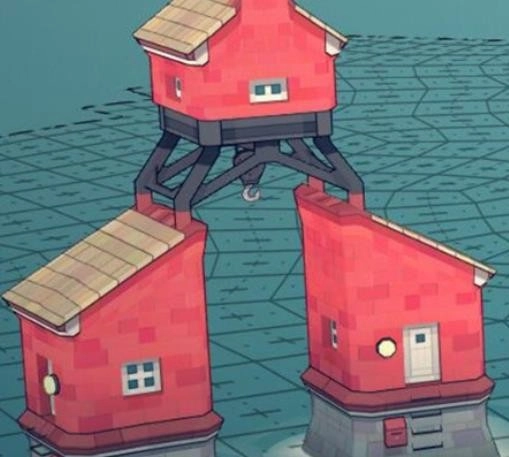 选好地形后,玩家就能放置房屋了。中间两个房屋之间还能再放一个房屋,不过放置完成后得用钩子固定住,不然房屋会直接脱落,把整个地形都压坏。