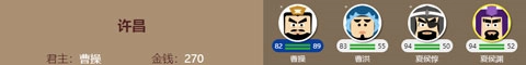 右边武将名字上面的数字分别表示武力和智力,例如曹操武力82智力89