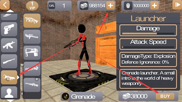 进入商城后,你能看到已内购的货币数量,挑选心仪的枪支,点击“BUY”按钮即可完成购买。