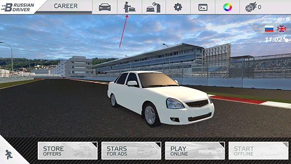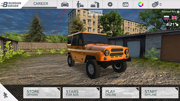 2、在主页面能够查看当前车辆的外观,若想更换外形,点击顶部的汽车按钮即可。