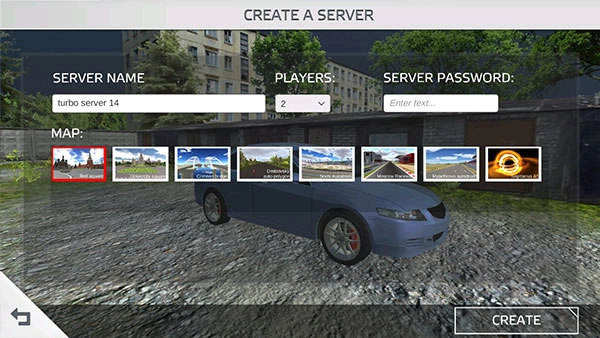 5、接着输入房间名称,设置好密码与人数(人数上限为32人),再挑选一幅地图,最后点击CREATE按钮完成创建即可。