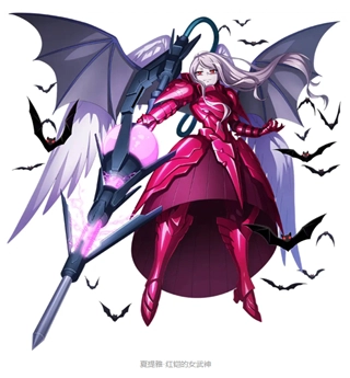 当她披挂整齐、全副武装时,身着传说级的鲜红色全身铠甲,单手握着神器级的滴管长枪,在战场上肆意狂暴、纵横无阻。她那副模样,堪称名副其实的女武神——既带着残酷的锋芒,又有着动人的可爱,向所有对手宣告着死亡的约定。