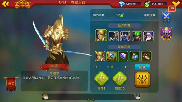 冒险关卡是游戏里获取英雄、英雄装备和道具的重要途径之一。每次挑战关卡胜利时,会依据关卡难度消耗6点、12点或18点体力,若战斗失败则不会消耗体力。成功通关后,能得到英雄碎片、英雄装备、加速道具等各类奖励。