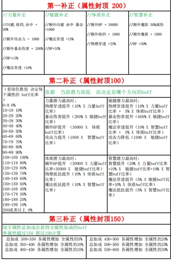 补正图里的补正分为一补、二补、三补,只有满级宠物才需要看补正,这是所有宠物属性计算的最后一项,具体来说就是先算个性加成,再算补正;补正自身的计算不存在先后顺序,最后把各项加起来得到总属性值就行。