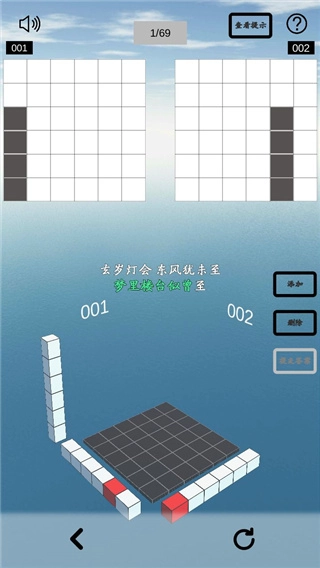 空间想象力是由Kaka Ku Games Inc.xl开发的几何图案解谜游戏,核心目标是锻炼玩家的空间想象能力。游戏着重培养玩家的空间想象创造力,在众多小关卡中,玩家需要切换不同视角观察几何立方体,借助01和02两种视角来绘制立方体的平面图案。游戏内设置了丰富的关卡供玩家挑战,每个关卡的任务都要求玩家从多元角度看待问题——尽管游戏呈现为2D平面形式,但玩家需要通过平面图推导三维空间结构,建立对空间物体的清晰认知。随着观察角度的变化,绘制的图案会愈发复杂,玩家需仔细观察,在脑海中快速构建对应的空间几何图形,准确想象其直观形态,进而梳理几何形体及各组成部分的形状、位置与数量关系,通过细致的观察和分析,最终解开每个关卡的谜题。