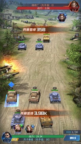 4、战力提升之后,接下来要做的就是击败在附近盘踞的外星人。进入战斗后,战车会自动开启回合制对战,整个过程不需要玩家进行操作,只要把敌人全部消灭就能取得胜利。