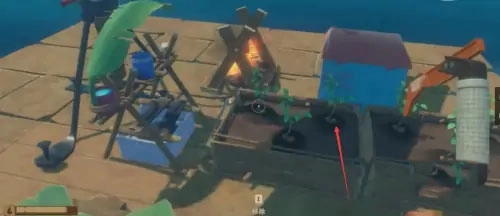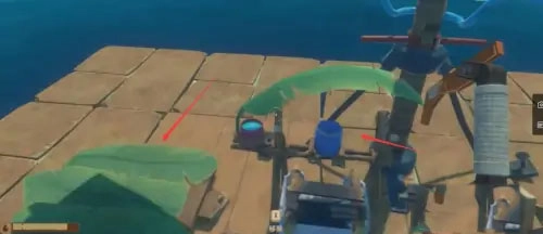 初期资源匮乏,得靠钩爪来收集物资,偶尔还会遇到一些零星的小岛。这时候可以用船锚固定木筏,造把斧头就能登岛采集更多资源。等后期能力提升了,还能在木筏上装捕网,这样就能更轻松地从海面上被动获取资源了。