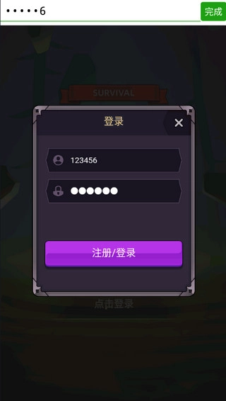 1、启动游戏后会弹出登录界面,目前作者尚未开放注册功能,随意输入一组账号密码即可进入游戏。