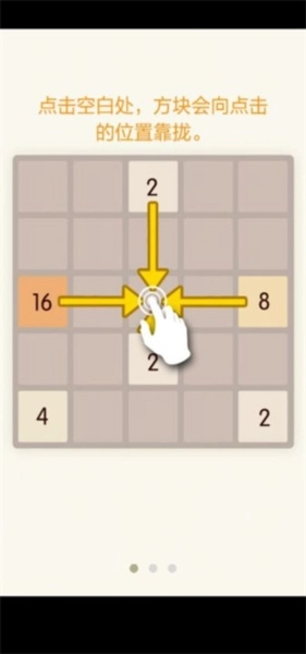 点击新2048空白的地方,方块就向其靠拢。当两数字相同的方块相遇就会合并为两数之和。