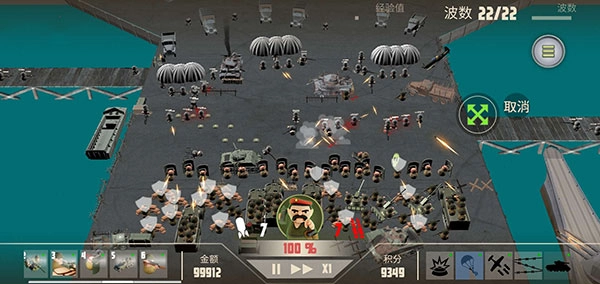目前游戏包含数十个等级、4种被动技能与5种主动技能,每一轮都能挑选不同的部队类型;随着游戏进程的推进,还会解锁各类升级道具。你也可以依据战场局势来排兵布阵。