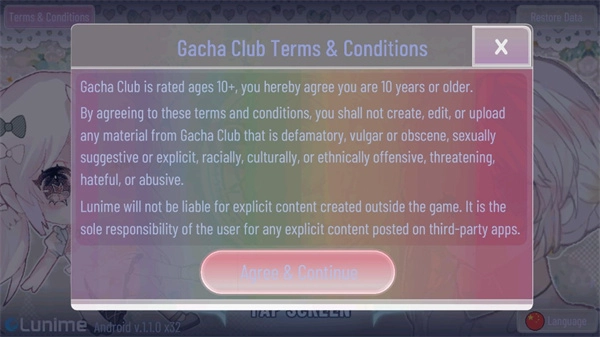 1、首先进入GACHA甜甜正版,这里点击右下角language;