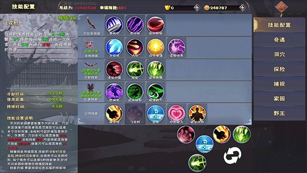 技能是游戏里的核心输出手段之一,其重要性不言而喻。玩家可以通过技能师升级技能,从而调整技能的冷却时间与持续时间,并且多个技能叠加的buff还能相互作用,产生全新的buff效果。