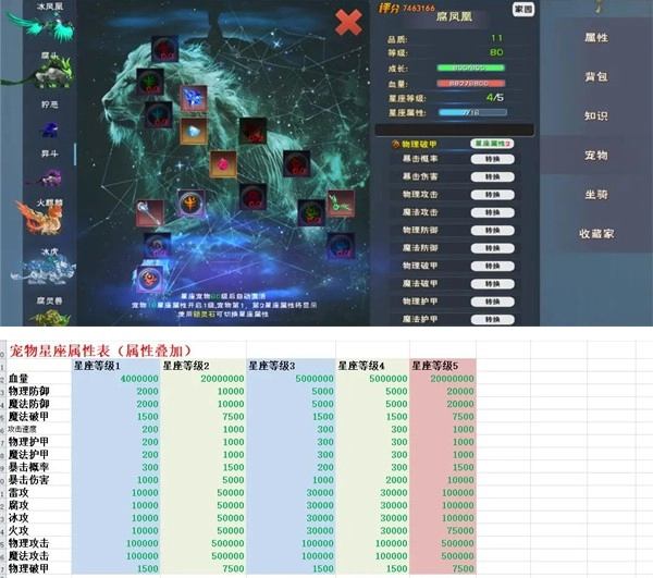4、对于11品质的宠物,出生的时候会随机拥有1~3条天赋属性,没有白板,没有白板,没有白板! 另外还有两星座属性。