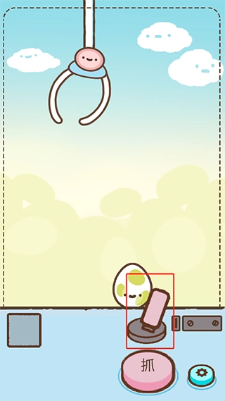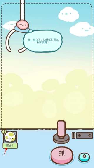 1、进入游戏后,会有一个简单的抓彩蛋环节帮助你快速熟悉流程。首先按住上方的操纵杆来移动最顶部的爪子,待调整到合适位置时,点击下方标有“抓”字的按钮即可。