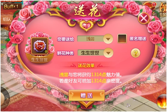 赠送鲜花后,送花的人和收到花的人都能得到魅力值,要是两人是好友的话,还能提升相应的亲密度。