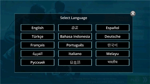 1、在本站摩托之旅最新版,进入游戏界面,选择中文。