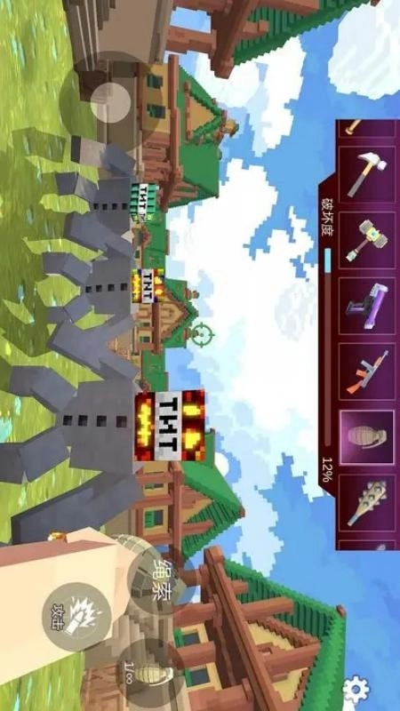 2、建筑创意发挥:运用材质不同的方块,搭建出功能各有差异的房屋与防御工事。