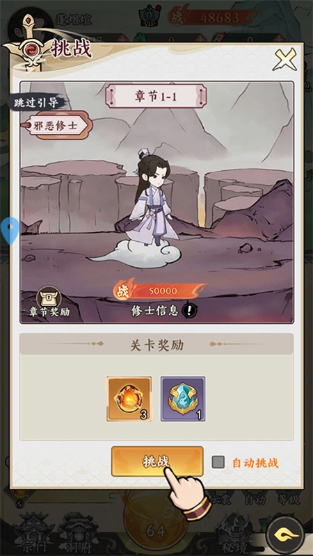 3、多元玩法:游戏里既包含挂机修炼、开箱子这类轻松惬意的玩法,也设置了探索秘境、对抗妖魔、挑战天劫等富有挑战性的内容供玩家体验。每种玩法都暗藏变数与机遇,使玩家的修真之旅处处充满未知与惊喜。