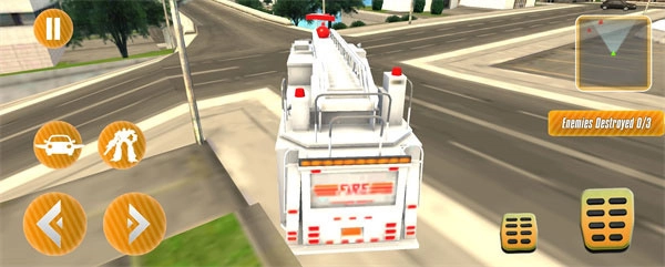 1、采用横版布局的游戏界面,便于玩家点击各类功能按钮,操控消防车机器人迅速完成灭火操作,还能一键触发强力大招。