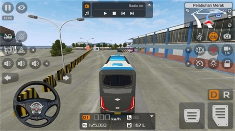 3、右上角会有导航地图,可以清楚地看到自己的位置和目的地的位置,在驾驶的途中还可以了解学习印度的交通规则,以上就是印度尼西亚巴士模拟器的玩法了。