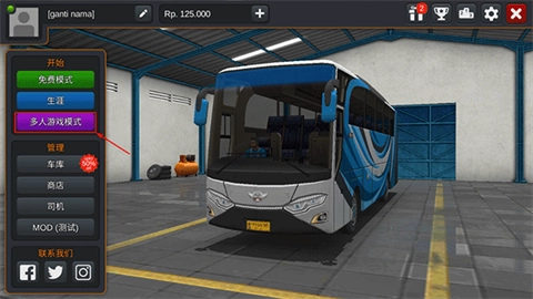 1、第一步先启动印尼巴士模拟器,进入游戏界面后,点击左边的多人游戏模式选项。