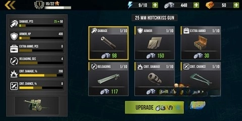 7、取得胜利后,您会得到奖励资源,这些资源可以用来提升火炮的各项属性!