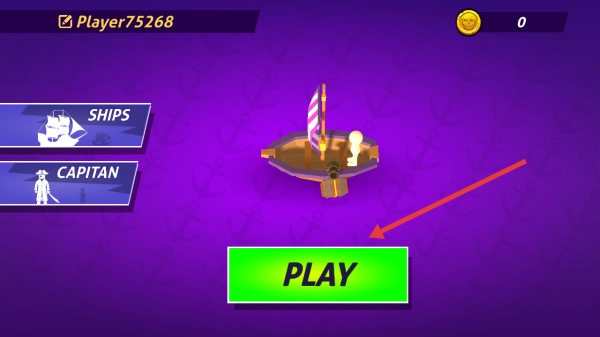 1、初始界面点击绿色PLAY按钮,快速进入海战场景,开启船只对战的冒险流程,迈出战斗第一步。