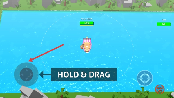 2、海战阶段,按住左侧圆形操控盘并拖动,灵活控制船只在水域移动、转向,调整战斗位置。