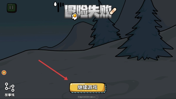3、失败后点击继续游戏按钮,重新挑战关卡,调整应对棕熊的选择,换武器/策略,尝试通关雪山寻宝。
