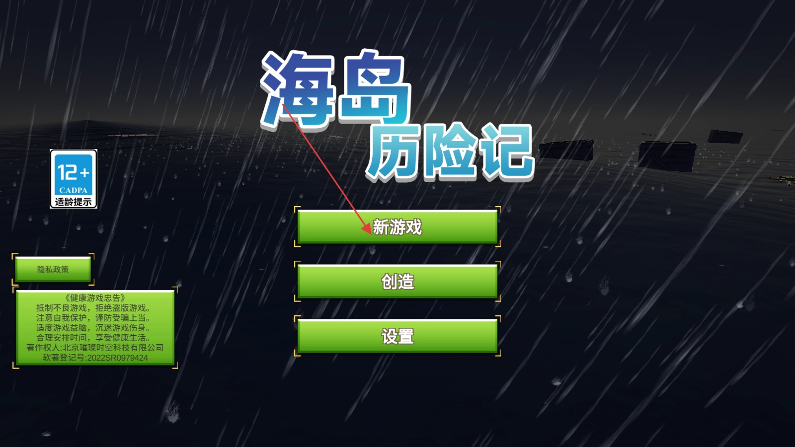 1、点击【新游戏】,进入海岛生存,开启冒险之旅。