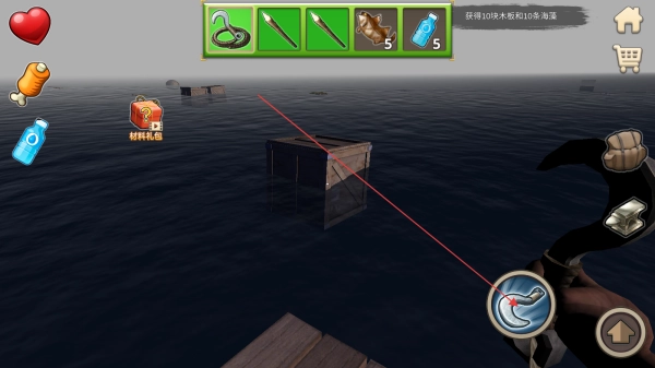 3、把准星对准物资箱,按下钩子对应的按键,通过勾取漂浮的箱子来获取资源。
