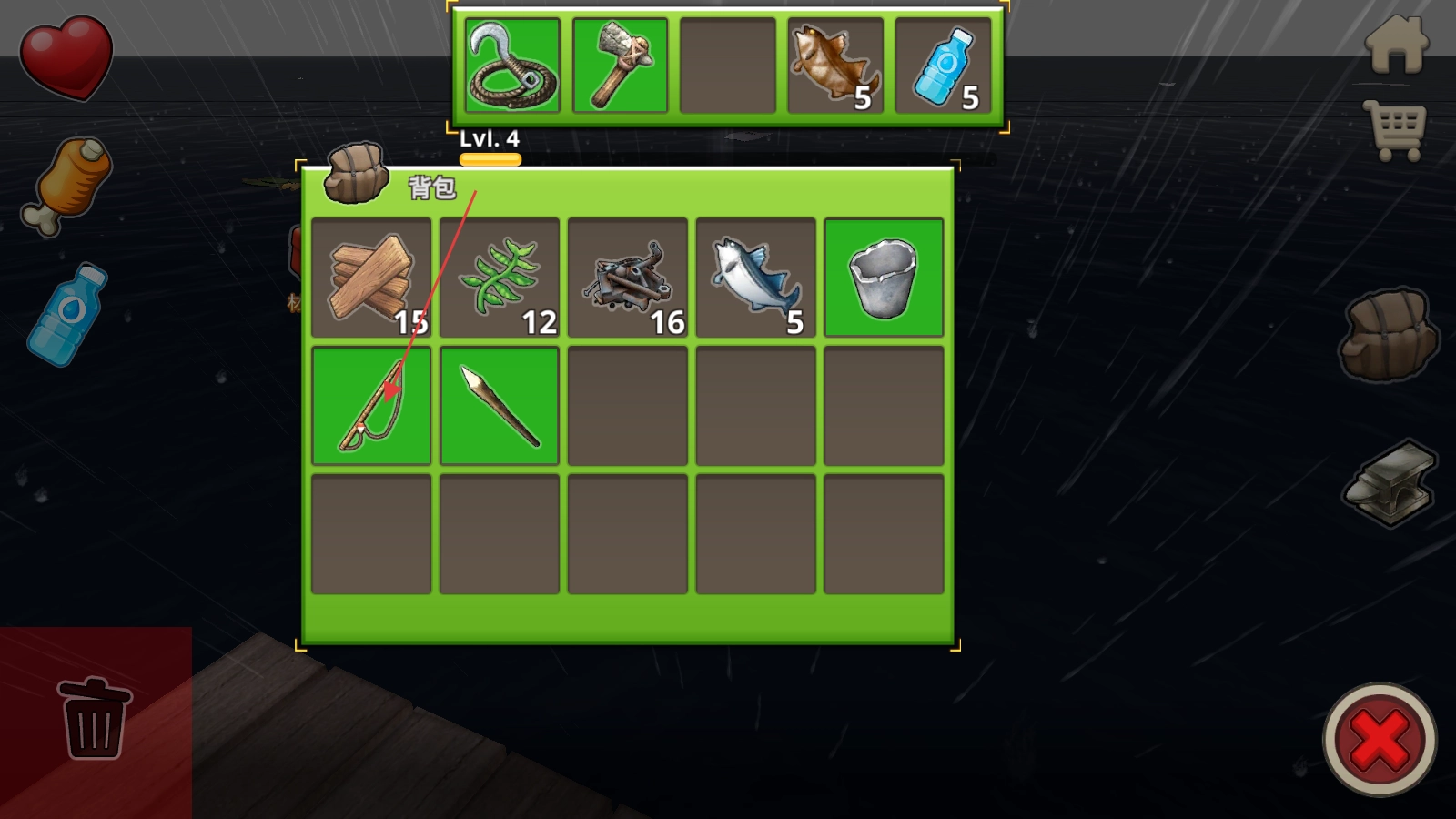 3、木筏扩建升级:通过收集更多碎片来扩大木筏规模,让它变得更大,以此大幅扩充军团,为战斗与生存创造更充足的空间。