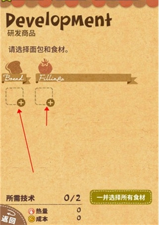 4、点击此处将目前技术能够放置的食材放进去;