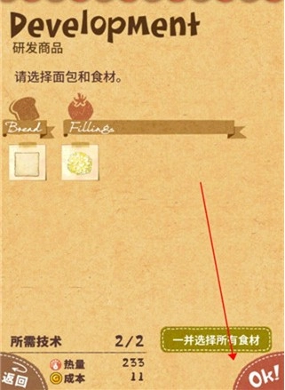 7、然后选择刚才制作的三明治就可以进行售卖了。