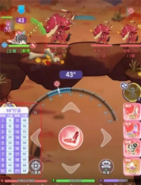 角度盘的使用可谓是游戏中最基本的操作,通过“←、→”可以实现左右移动,通过↑、↓”可以控制炮弹发射的角度。不同的武器有不同的射击角度区间,新加入的梦弹手可以尽量选择角度区间比较大的武器,更有利于瞄准操作~
