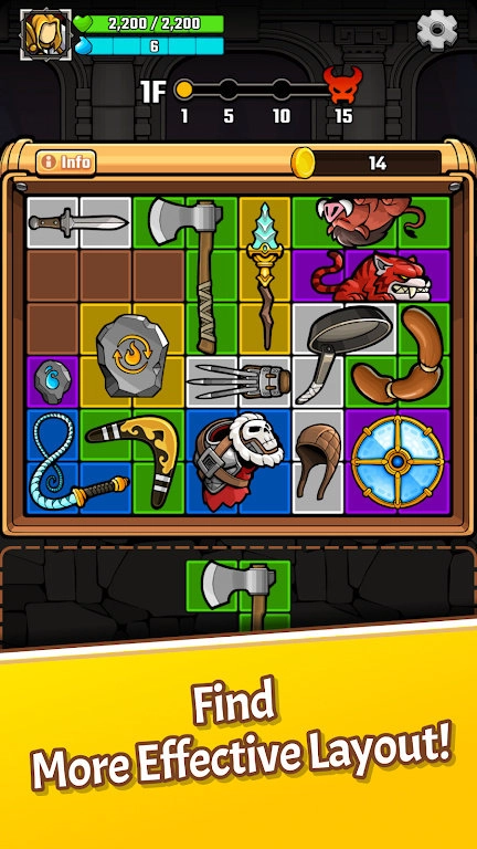 1、巧妙利用每一个格子来强化你的游戏角色,增强他的战斗力。