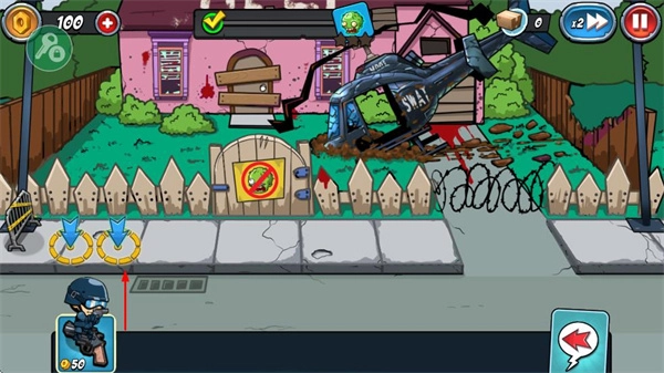 4、经典塔防策略核心:延续塔防游戏的布局策略玩法,玩家要合理布置防御设施、操控警察角色,在僵尸冲破防线前将其歼灭,考验战术规划能力。