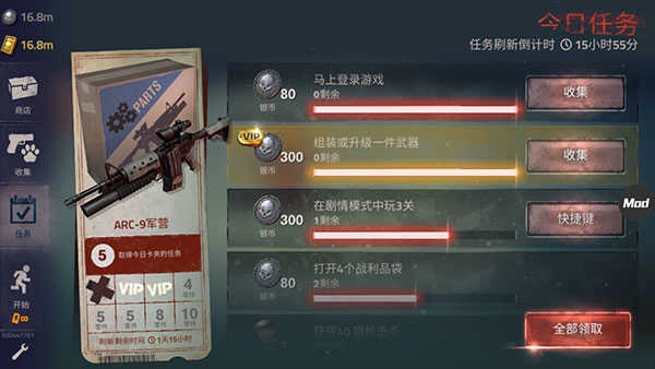 每一关通关之后都会有通关礼包奖励,通关礼包中有枪械零件,零件可以用来组装更加强力的武器,重复的零件可以升级武器。提升伤害等等