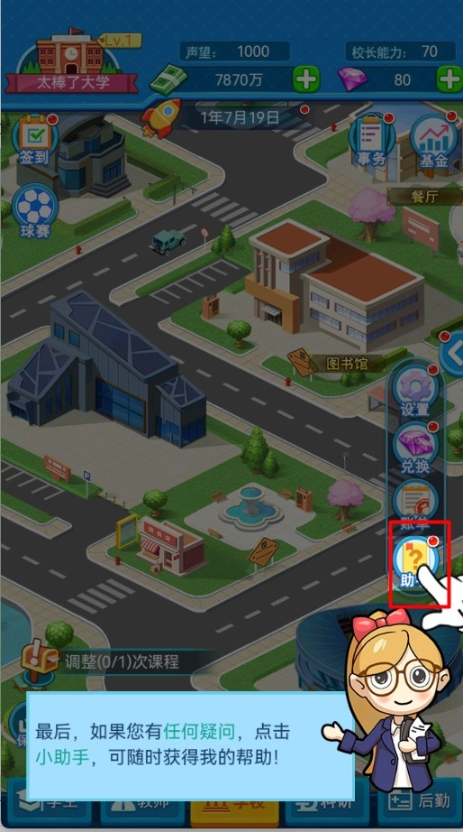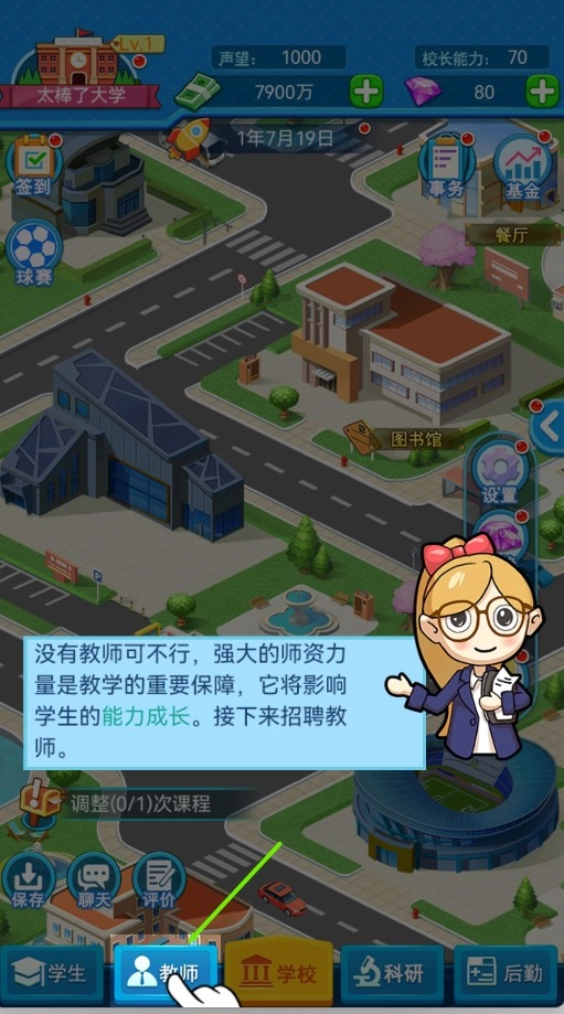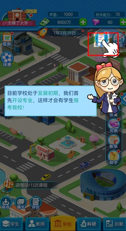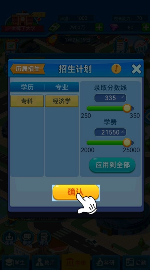 3、游戏内可以自由选择建筑设施的建造,专业班级的开创,招生人数等等相关信息,自由度高。