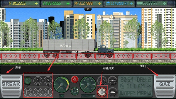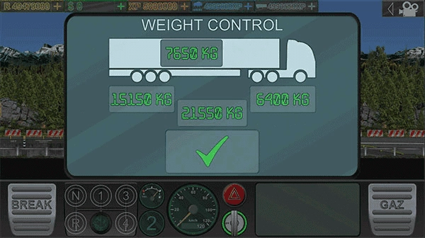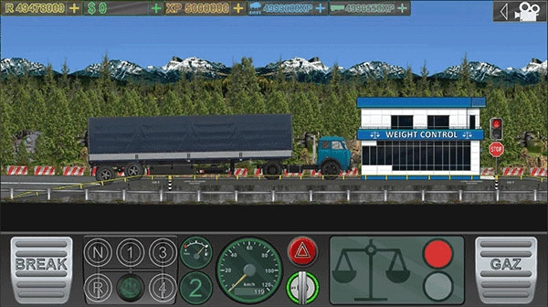4、借助屏幕上的方向按键把控车辆行驶节奏,手动切换档位来应对不同路况,还可解锁各类卡车,在丰富多样的地图里尽情驰骋;