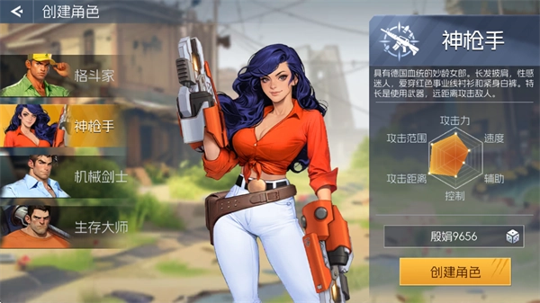 具有德国血统的妙龄女郎,长发披肩,性感迷人,爱穿红色事业线衬衫和紧身白裤。特长是使用武器,远距离攻击敌人。