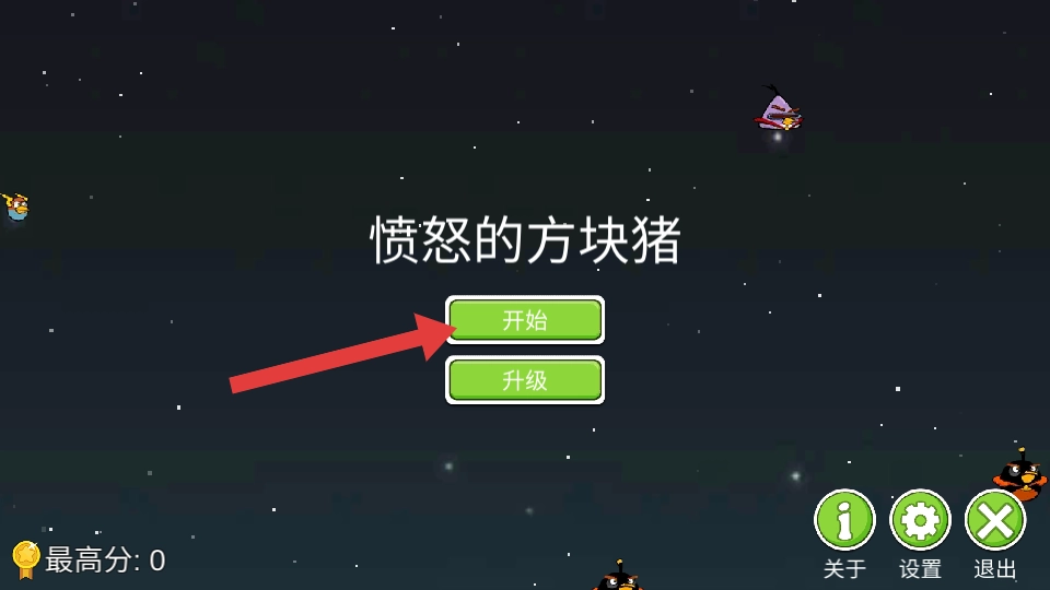 1、点击【开始】,进入游戏,开启方块猪的挑战之旅。