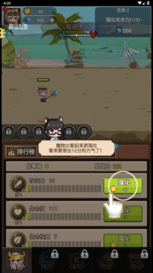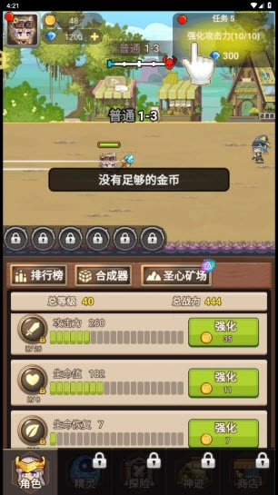 2、消耗金币能够增强你的各项属性,像攻击力、防御力、生命值之类的。