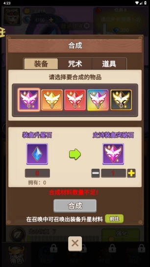 4、金币不足时,则不能继续强化。