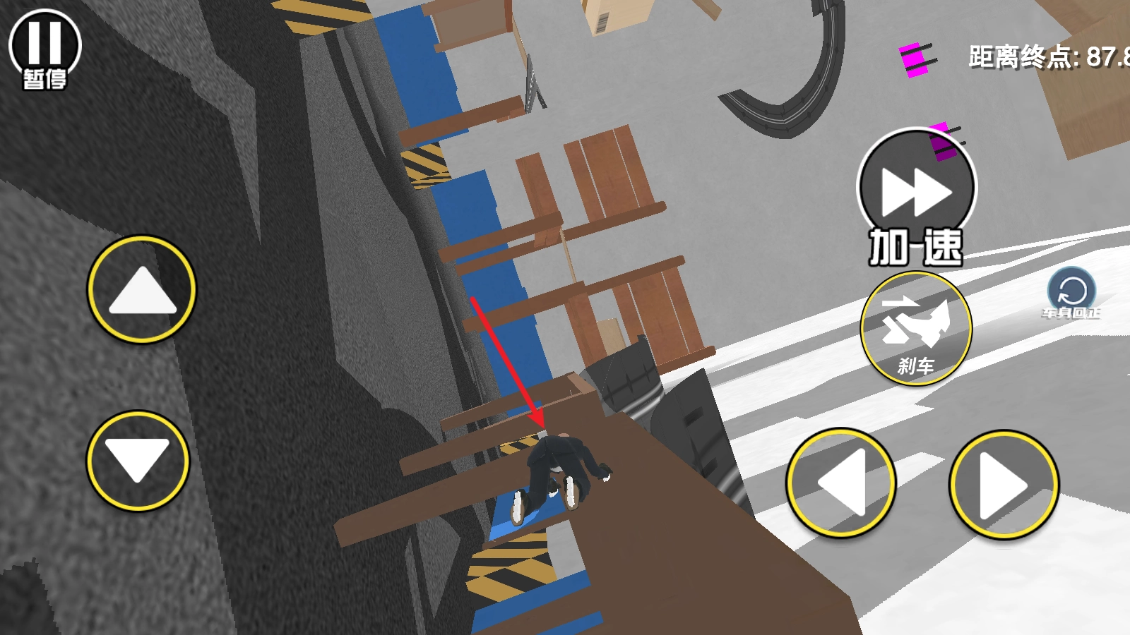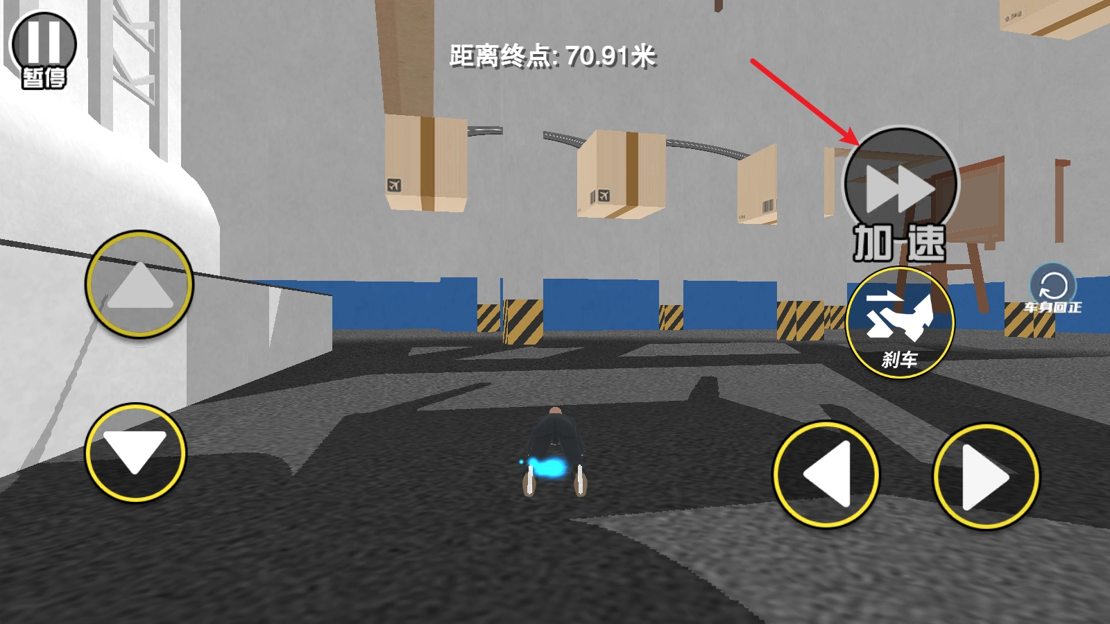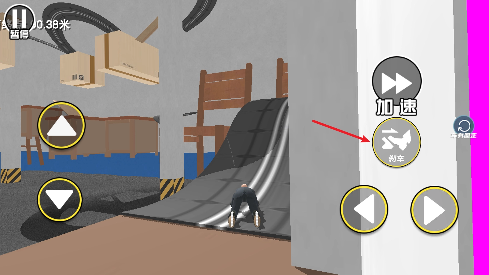 当速度过快时,我们可以点击刹车来降低速度,以防发生撞击或冲过头的情况。