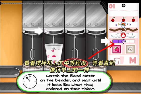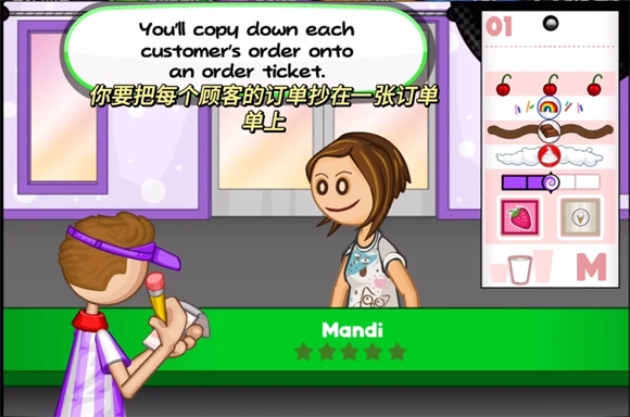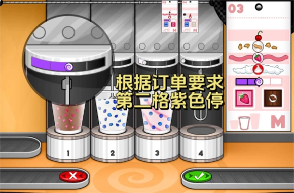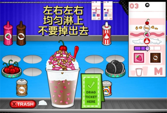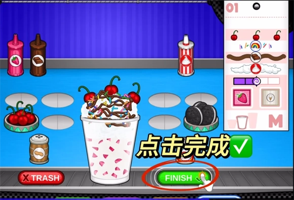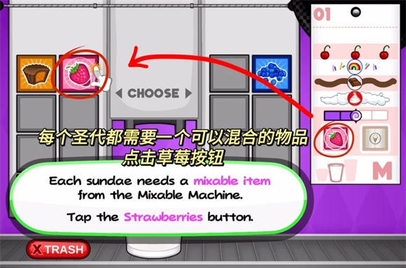 3、每一个圣代都需要搭配一个可混合的物品,请根据订单要求点击相应按钮