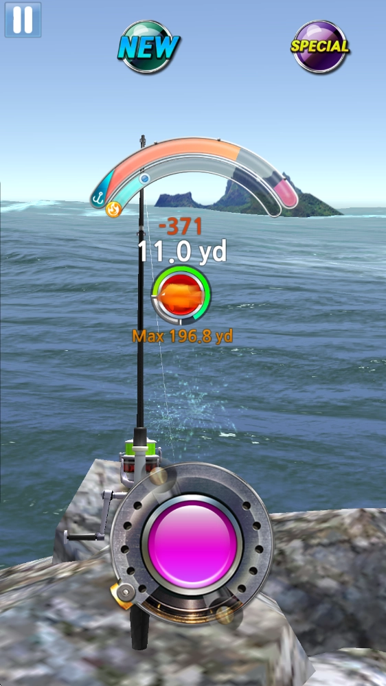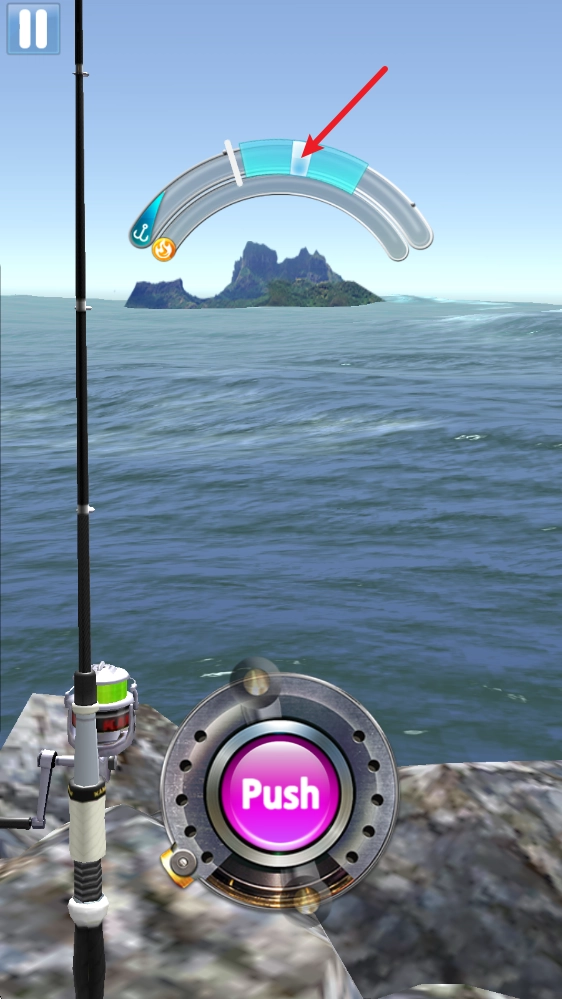 4、收杆过程中药不断点击PUSH来减少鱼的牵引力。