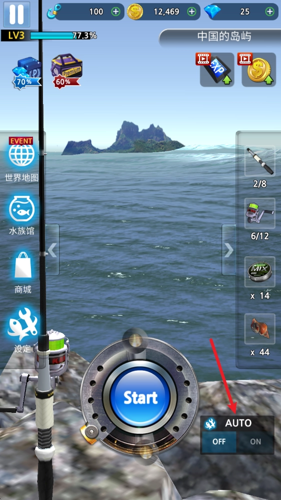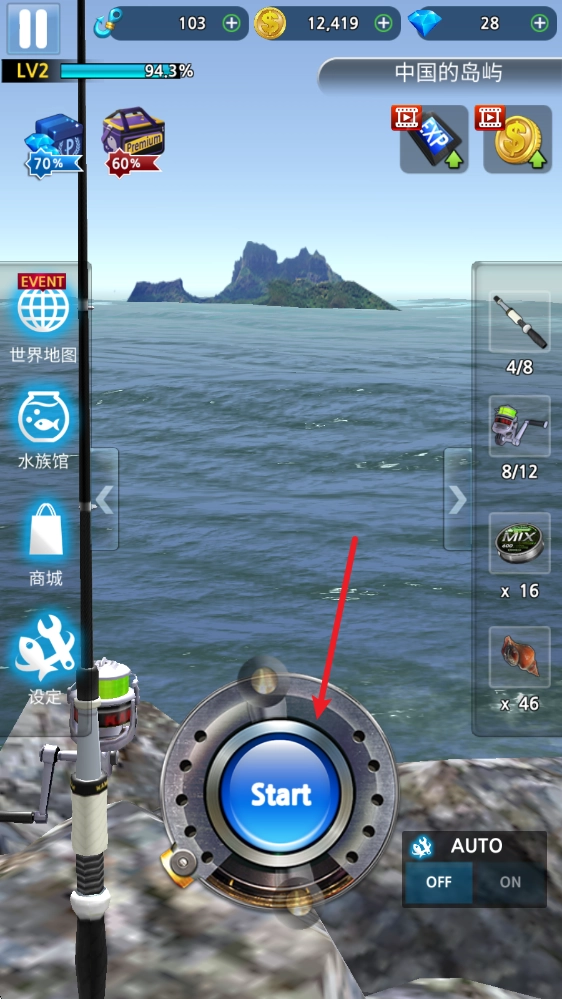 1、在开始钓鱼前,点击AUTO按钮,切换到ON的状态。